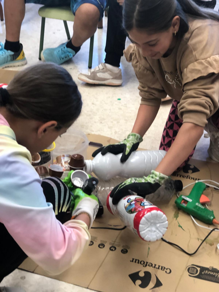 A través de una propuesta creativa basada en el reciclaje y en el uso de técnicas plásticas, niñas y niños construyeron naves espaciales utilizando materiales reutilizados. Estas estructuras sirvieron como punto de partida para imaginar cómo podría ser un mundo diferente, con menos conflictos, más naturaleza y mejores condiciones para todas las personas y animales.