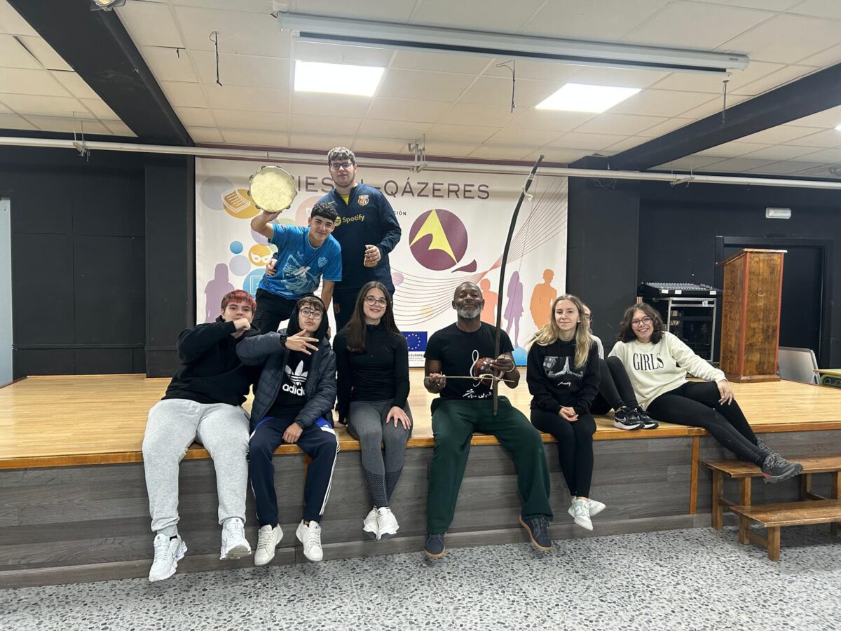 La mezcla lucha, danza, acrobacia y música que es la capoeira, se ha consolidado como una poderosa herramienta educativa. Más allá de su componente físico, promueve la expresión corporal, el respeto mutuo y la coordinación interpersonal. Estos valores se alinean con la metodología del programa MUS-E, que impulsa el desarrollo integral del alumnado a través de propuestas artísticas activas y participativas, como las que se han llevado a cabo durante este primer trimestre en el IES Al-Qázeres de Cáceres.