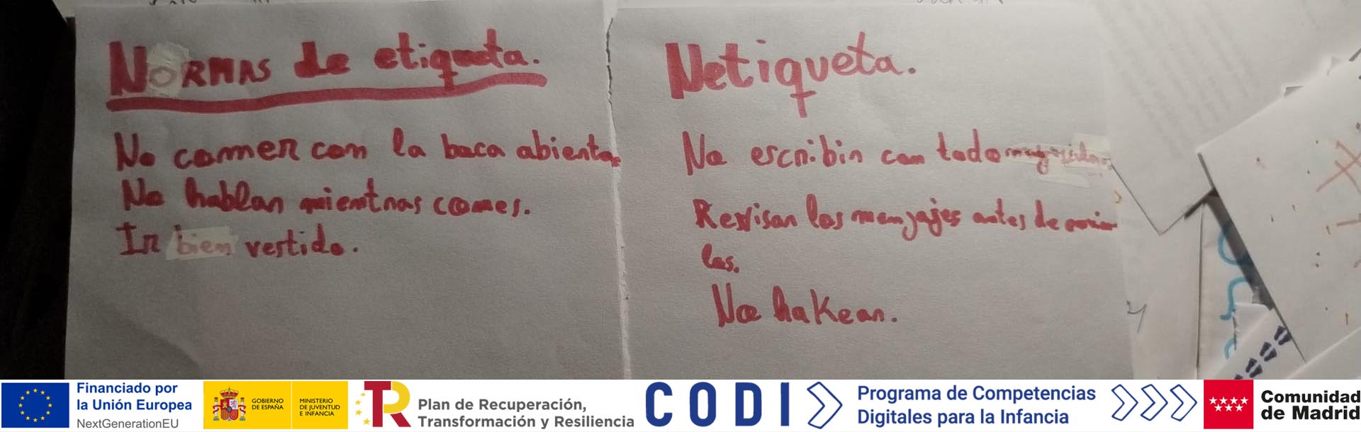 Las normas de convivencia en internet, también conocidas como netiqueta, han sido el centro de una nueva sesión del programa CODI-Arte en el CEIP Séneca de Parla. De la mano de la formadora Gabriela Waisberg, el grupo de niñas y niños de entre 8 y 11 años ha profundizado en cómo deben relacionarse en los entornos digitales, comprendiendo que la comunicación online también requiere respeto, empatía y responsabilidad.