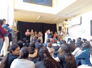 A continuación se pueden ver unas fotografías de las dos actuaciones que llevaron a cabo las artistas con los alumnos y alumnas con los que suelen trabajar. Una muestra de improvisación teatral, en el caso de María Bris y una coreografía de danza moderna por parte de Dolma. Ambas han tenido lugar en la Semana de las Artes de nuestro centro.