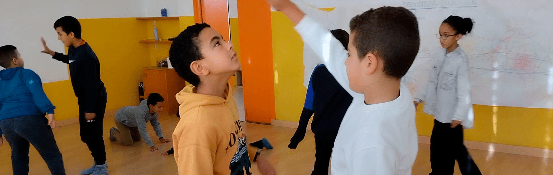 «Este es un trabajo de teatro-danza», comenta Marianna Arbia, la artista MUS-E al cargo de las sesiones. «Trabajamos el diálogo y la comunicación a través de juegos de atención y de trabajo en equipo. «
