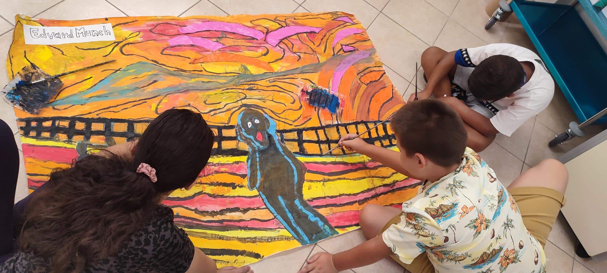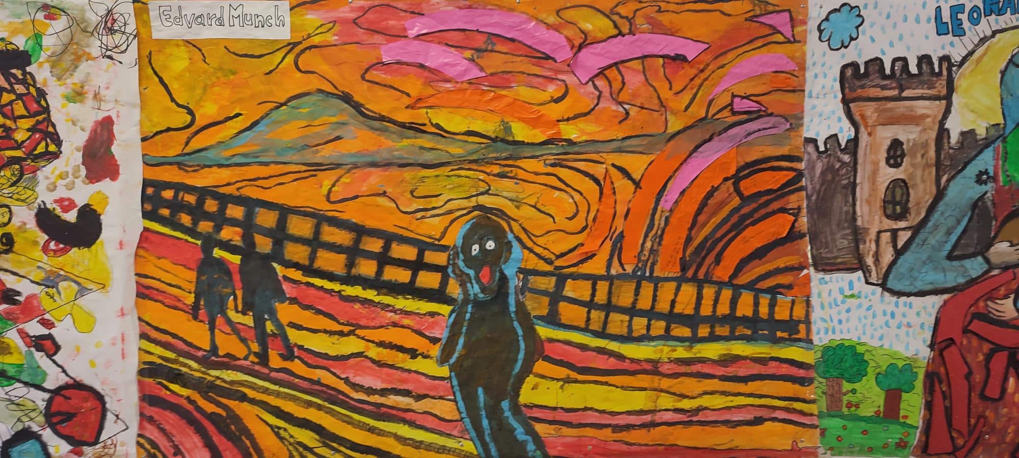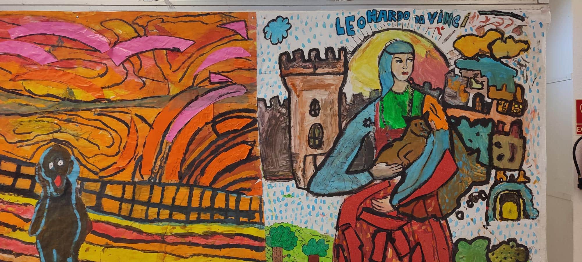 Las actividades arrancaron con una introducción teórica, en la que los alumnos y alumnas aprendieron sobre el lenguaje artístico, los momentos históricos y el contexto social en el que se crearon las obras seleccionadas. Posteriormente, los estudiantes realizaron bocetos individuales, formaron grupos de 5 o 6 personas y eligieron una obra para recrearla en gran tamaño sobre cartón o papel continuo. Para completar el proceso, utilizaron técnicas mixtas y diversas texturas que les permitieron explorar su creatividad.
