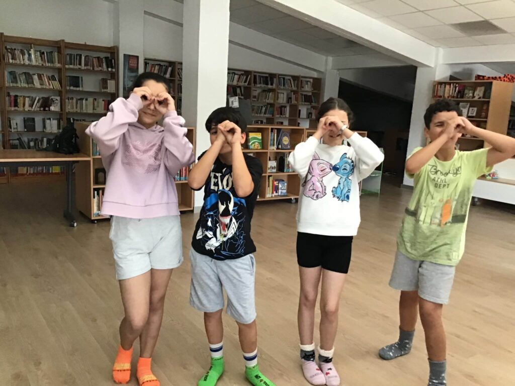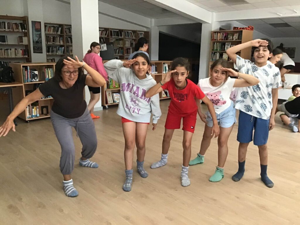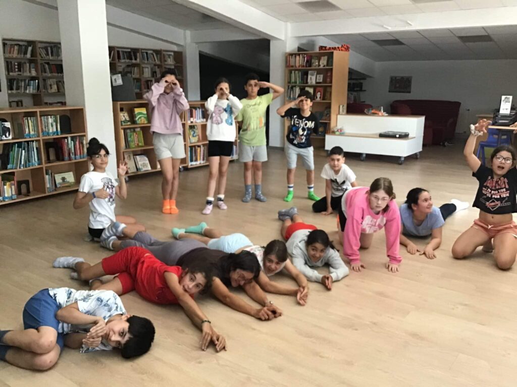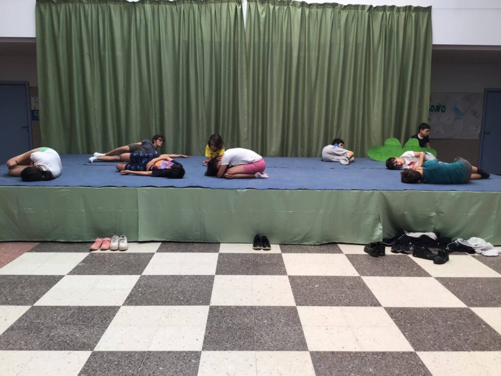 Con el grupo de quinto grado repasamos algunas de las danzas aprendidas en los días anteriores como el “cangrejo de Brasil, el Ciempiés de Colombia, también hicimos movimientos de mariposas y caballos y una exploración de la selva imaginando exploradores, leones y serpientes.