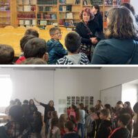 En la mañana del 3 de noviembre, en el marco del Proyecto Erasmus+ ‘Educarte en identidad europea’ y con la colaboración establecida con la Universidad de Évora (UÉ), los niños/as y profesores/as de 2º y 4º año de la Escuela Básica Cruz da Picada – MUS-E Évora, acompañados por el artista MUS-E Gheysla Nascimento, realizaron una visita comentada al Colégio dos Leões, un centro de la UE dedicado a cursos artísticos.