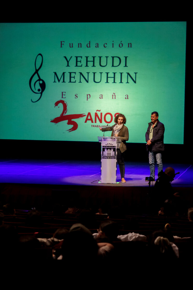 La jornada comenzó con el agradecimiento a las entidades que hacen posible el programa MUS-E en la región: la Consejería de Educación de la Junta de Extremadura, la Consejería de Salud y Servicios Sociales, y la Diputación de Badajoz. Intervinieron Pedro Pérez Durán, director general de Innovación e Inclusión Educativa, y Sara García Espada, consejera de Salud y Servicios Sociales, junto con Anabel Domínguez, directora de la Fundación Yehudi Menuhin España (FYME), impulsora del programa MUS-E.