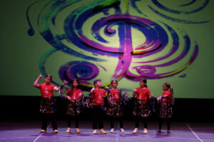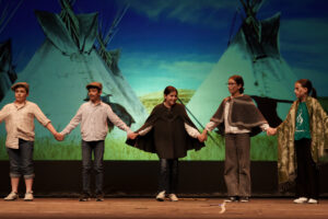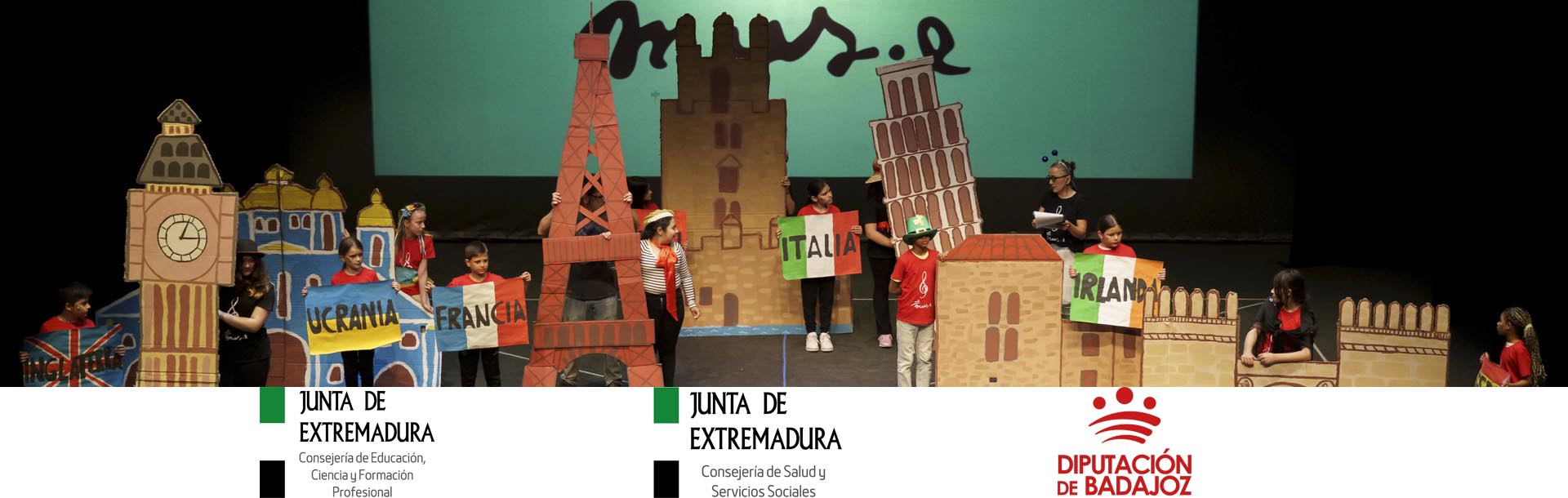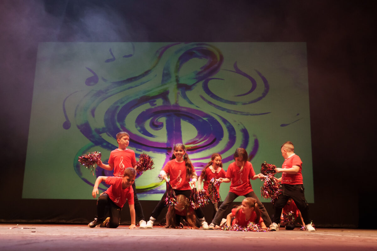 Durante el evento, se presentaron los trabajos de 14 centros educativos de la provincia, fruto de meses de trabajo conjunto entre alumnado, profesorado y artistas. El CEIP Manuel Pacheco abrió el escenario con una coreografía titulada Dolma Danza Urbana, que abordó el compañerismo, la empatía y el trabajo en equipo. Como parte de esta intervención, se presentó también una propuesta visual con esculturas en cartón representando distintos países, creadas junto al artista José Manuel Gamero Gil, quien, simultáneamente, pintaba en directo desde el patio de butacas, acompañado de unos ayudantes muy especiales provenientes del CEIP San Pedro de Alcántara.