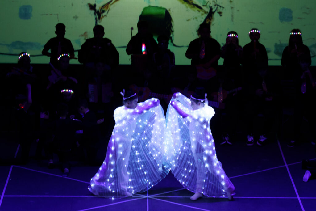 Uno de los momentos más emotivos llegó con la actuación del CEE Los Ángeles, que compartió una pieza de danza en conmemoración del 80º aniversario de Auschwitz, apelando a la necesidad de proteger a la infancia frente a cualquier forma de violencia. El CEIP Santa Engracia presentó un trabajo audiovisual realizado junto al artista José Manuel Gamero, donde se combinaban creatividad plástica y mensaje social.