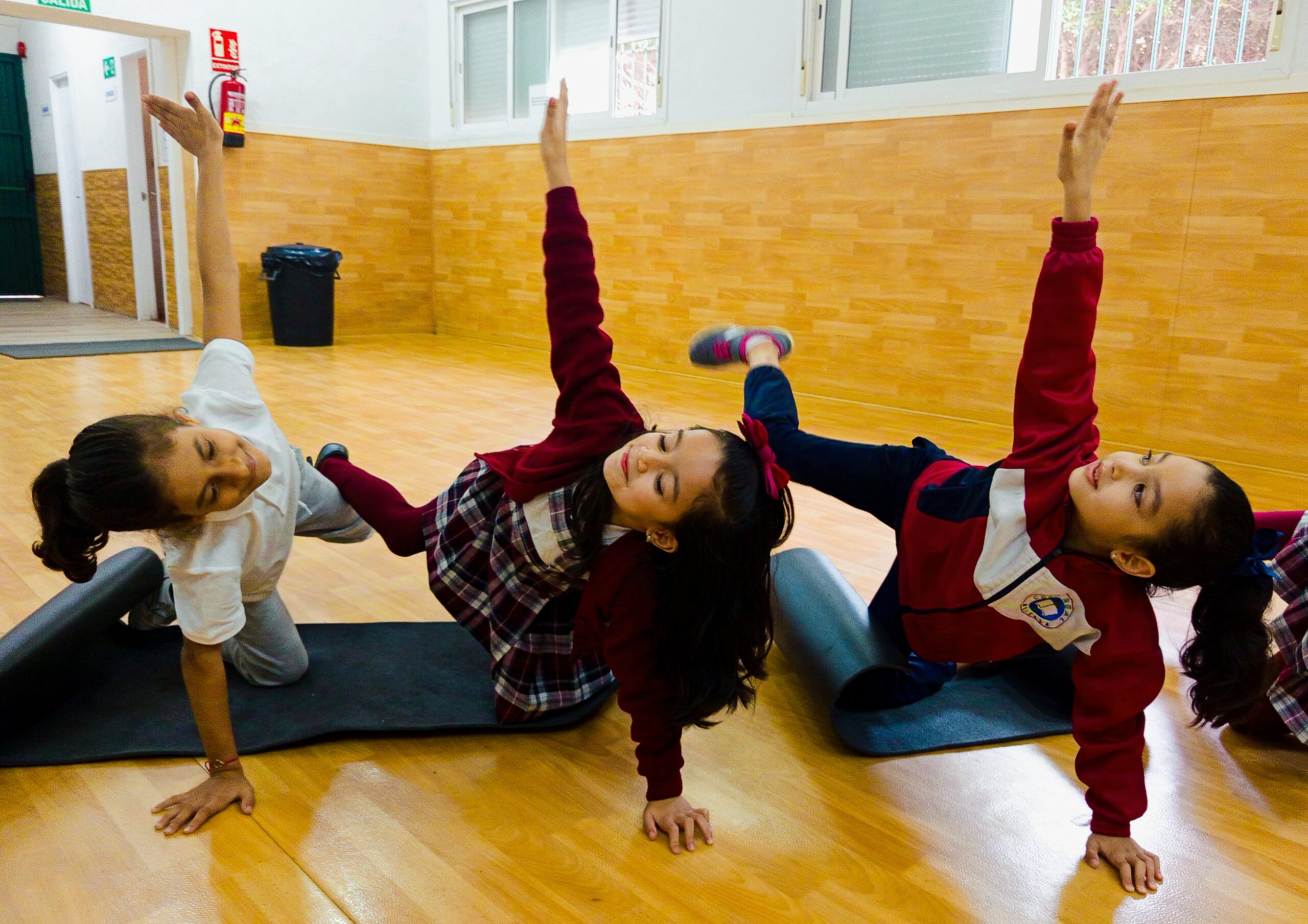 - Trabajo en equipo y motivación grupal: Al realizar estas posturas juntas, las niñas se inspiran mutuamente, promoviendo la cooperación.