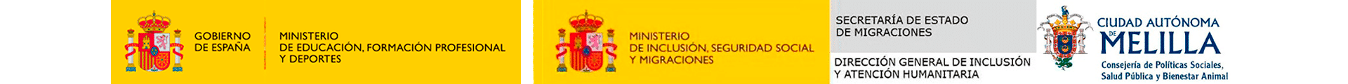 Esto ha sido posible gracias al Ministerio de Educación, Formación Profesional y Deportes, al Ministerio de Inclusión, Seguridad Social y Migraciones del Gobierno de España, y a la Consejería de Política Social, Salud Pública y Bienestar Animal de la Ciudad Autónoma de Melilla.